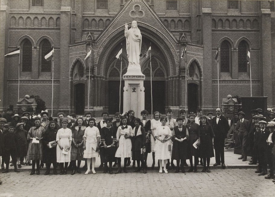 BSK0032 - Plechtige vernieuwing van de doopbelofte door groep dames voor de St. Johannes de Doperkerk, circa 1935.
