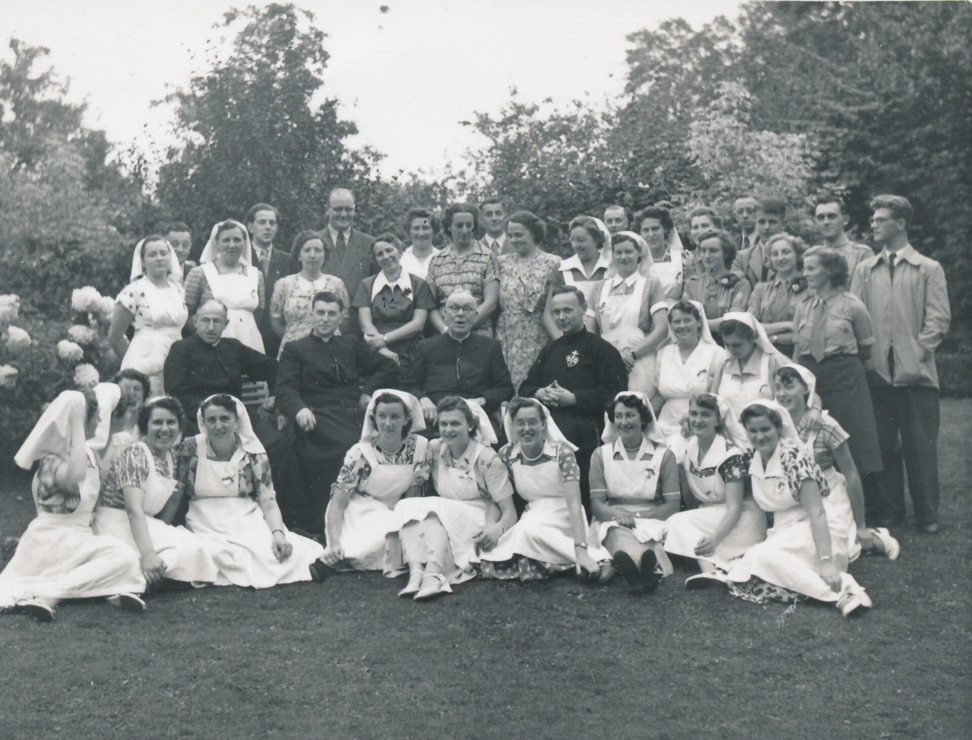 BSK0036 - Een groep, waarschijnlijk in de pastorietuin, met in het midden zittend pastoor Van den Brekel.