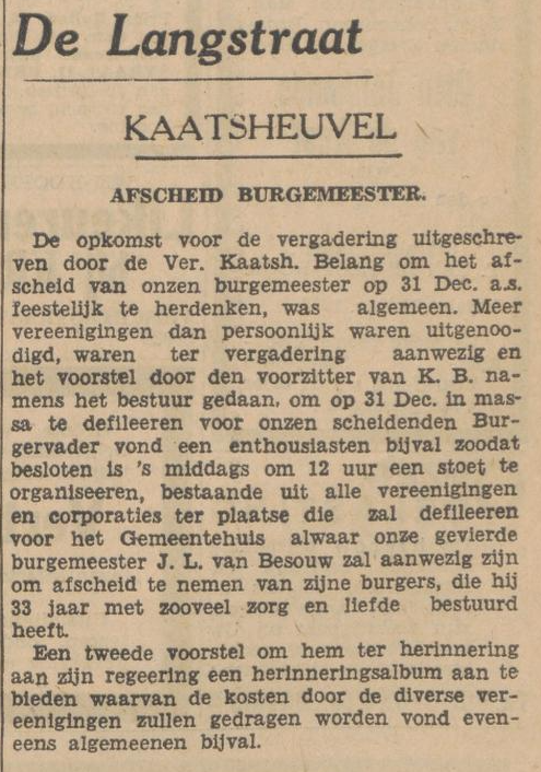 Afbeelding: Aankondiging van het aantreden van J.L. van Besouw als burgemeester van de gemeente Loon op Zand.